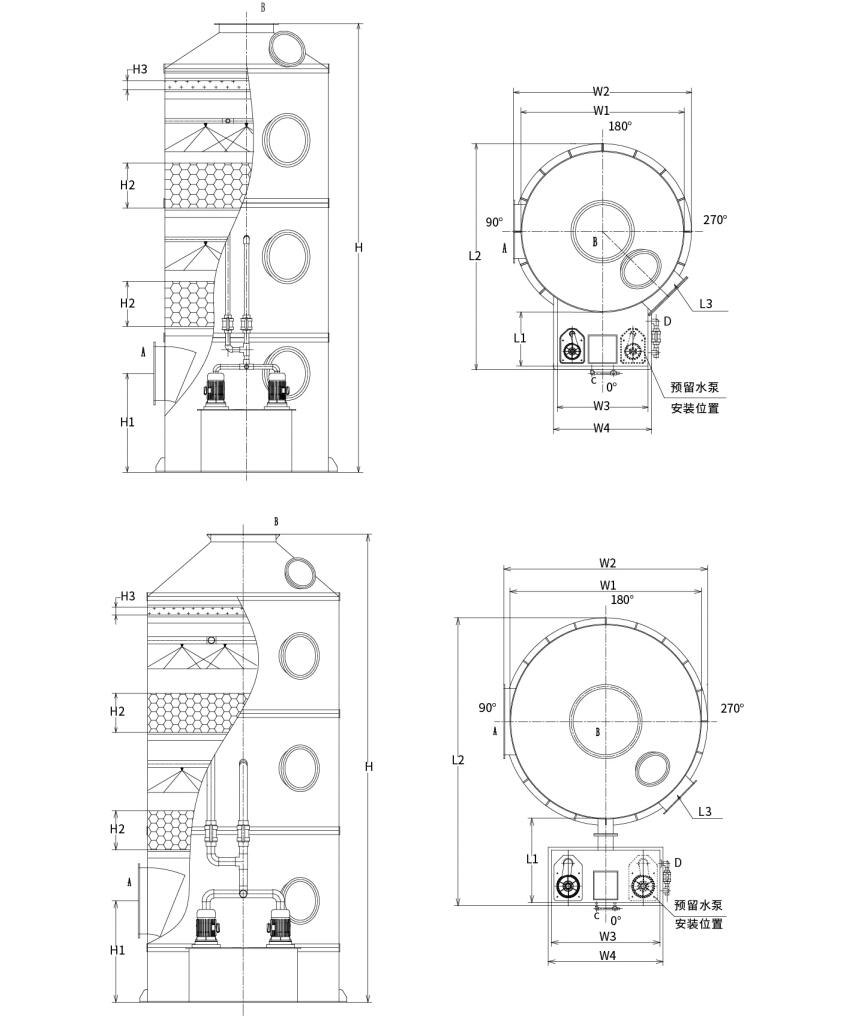 Tip 2: Bölmeli tip su deposu dolgulu sprey yıkayıcı (Kule çapı: Φ2500mm-Φ3500mm)